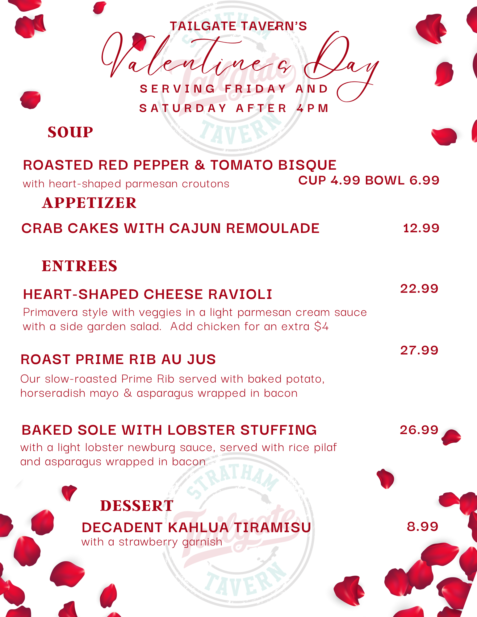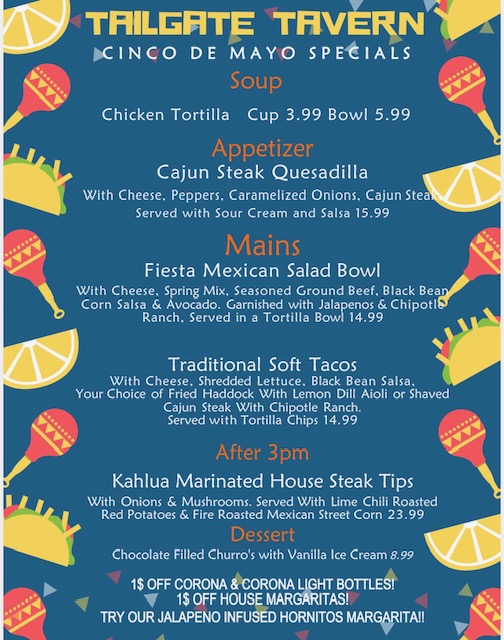 Whether you are rooting for your favorite team, having dinner with the family or kicking back with friends, Tailgate Tavern is the ideal place for good times, good food and a fun atmosphere!