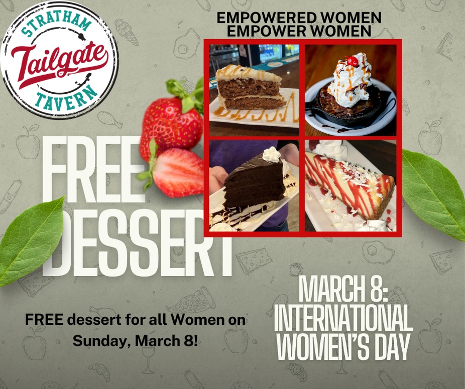 International Women's Day is Sunday, March 8th. We are offering all women a free dessert on this special day. Let's celebrate how empowered women empower women!