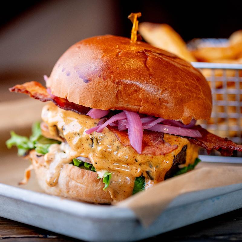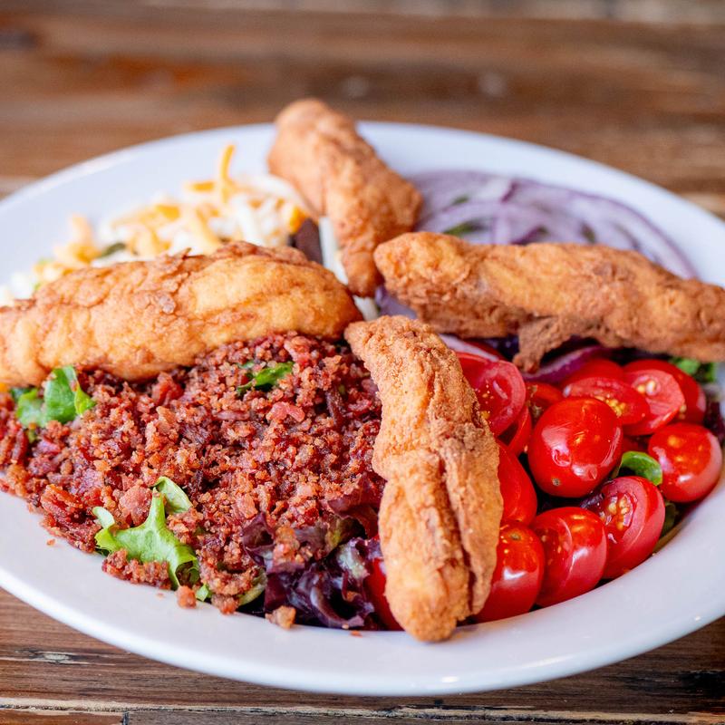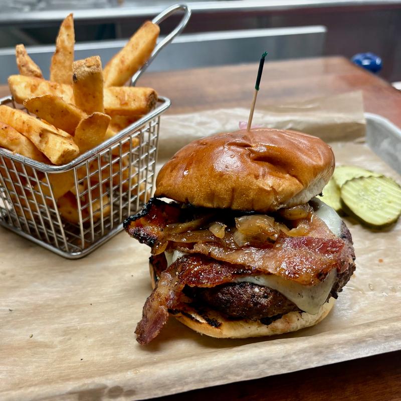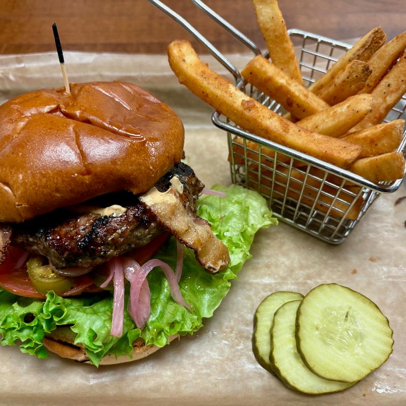 Half pound Angus burger grilled to perfection. Fried or grilled chicken can be substitued for any burger. Ask your server to add lettuce or tomato. All burgers are served with dill pickle chips and fries. Cajun Fries, Sweet Fries or Tater Tots $2 | Substitute side salad (Garden or Caesar) $4